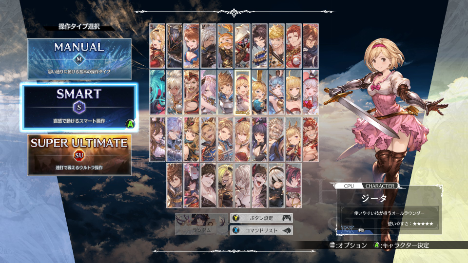 スマート操作はストーリーモード以外のすべてのモードで使用することが可能で、格ゲー初心者には難しい要素であるコンボをある程度自動的にやってくれるため、GBVSRで格ゲーをやってみようという方にとてもオススメの操作方法となっています。