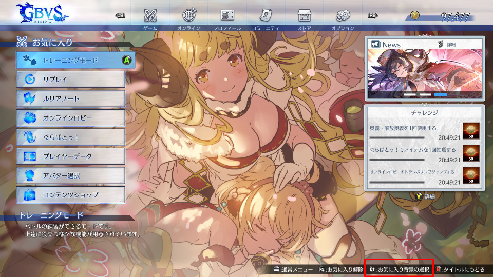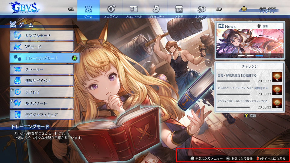 ランクマッチやトレーニングモードなどよくアクセスする機能をお気に入り登録しておくと便利です。
